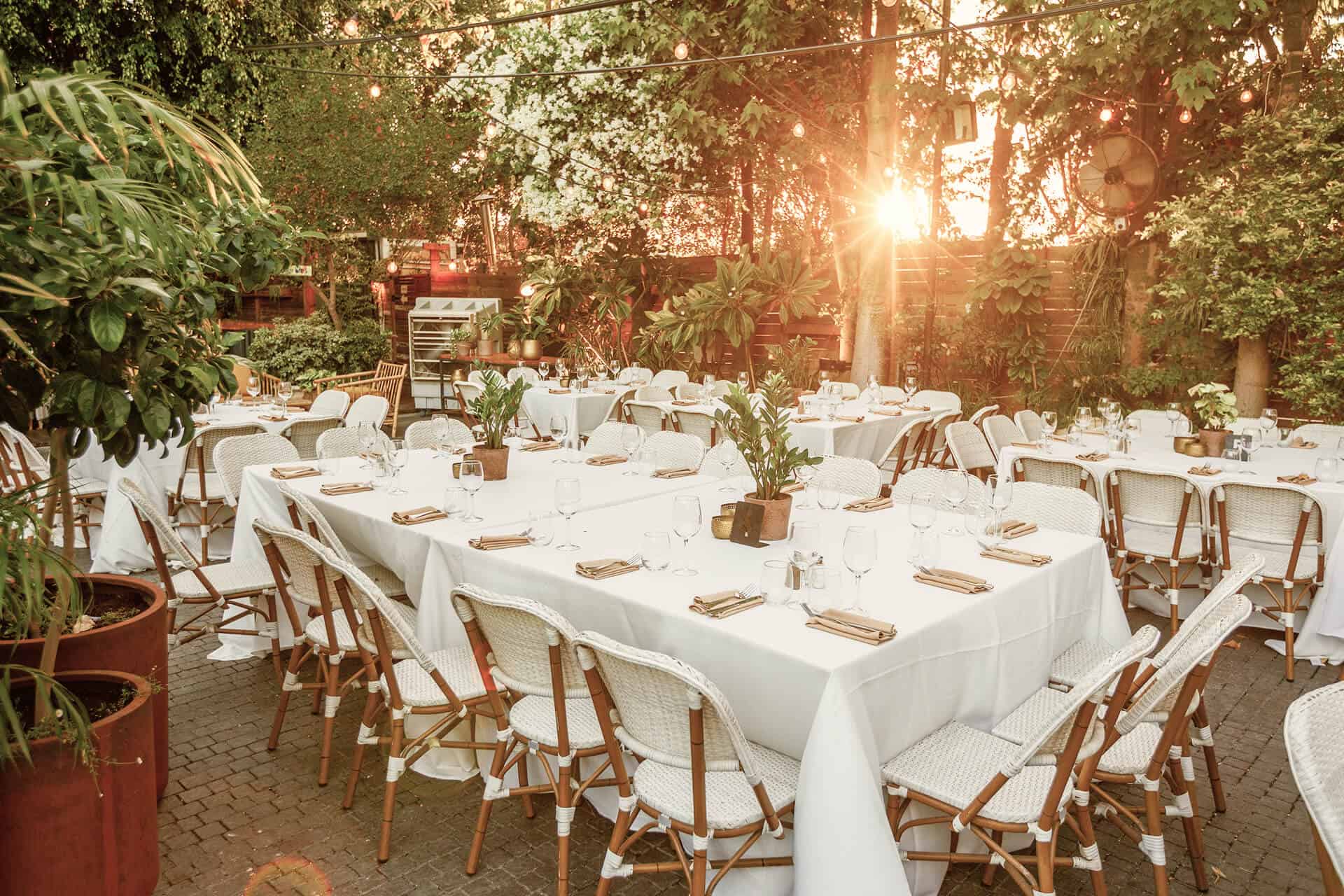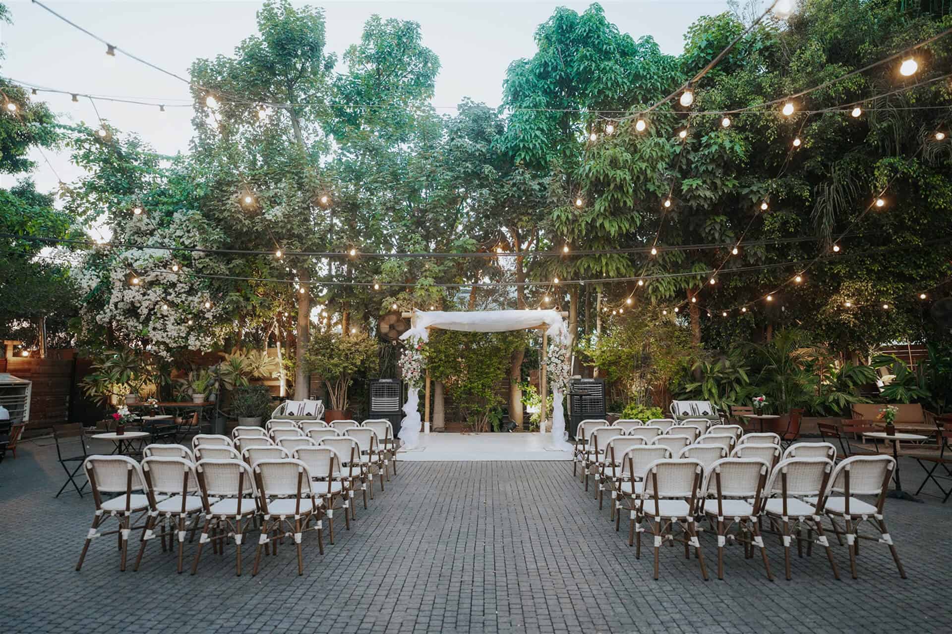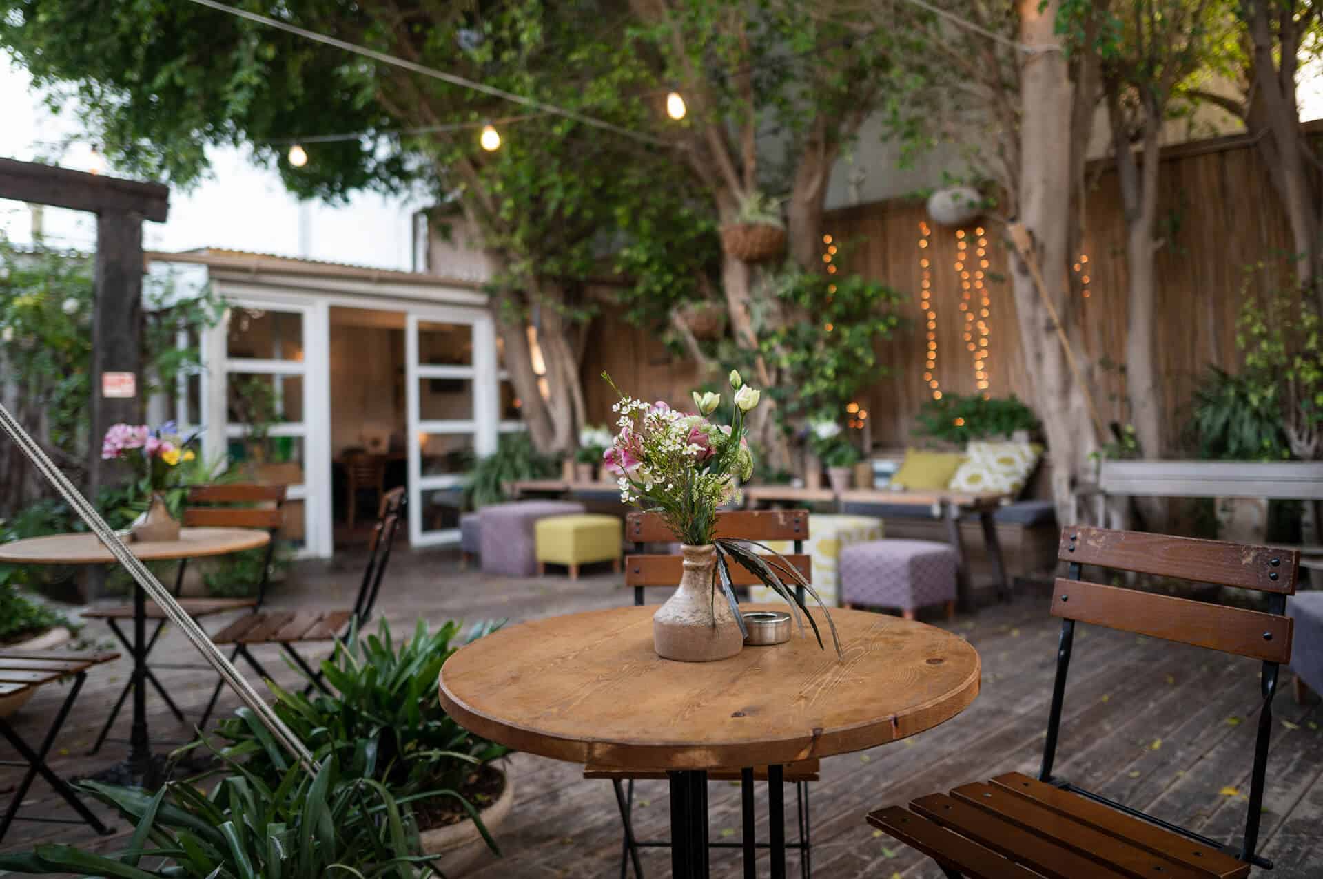הגינה פתוחה בקיץ לכיפת השמיים, מוצלת באירועי שישי ומקורה בחודשי החורף. בעונות המעבר, הגינה ערוכה בהתאם למזג האווירה, עם כל הציוד המקצועי הנדרש, החל ממאווררים וצ’ילרים בימים החמים ועד מערכות חימום מתקדמות בחורף.