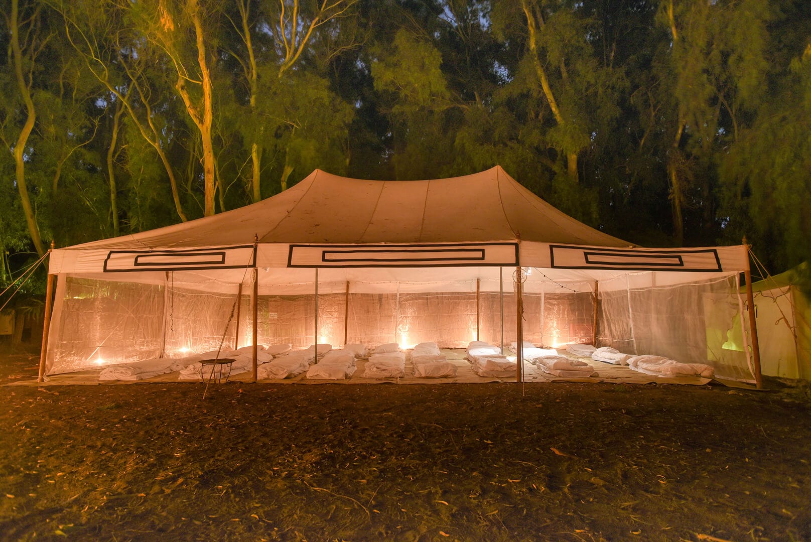 החגיגה ממשיכה אל תוך הלילה, עד הבוקר, באוהלי גלמפינג מפנקים, עם אוהל מלכותי לזוג הטרי.